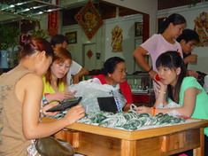 湖南郴州人许乐亮今年才22岁,在珠宝街经营一个“合利珠宝首饰店”。1994年,许乐亮来到瑞丽给一个老乡打工,做珠宝镶嵌工作。后来那个老乡经营不下去了,许乐亮就自己开了个加工车间。由于手艺好,许乐亮赢得了许多主顾,包括从北京、上海等地来的一些珠宝商。他给那些珠宝商加工手饰都是计件收费,从几十元到几百元不等。10多年下来,他不但自己在瑞丽站稳了脚跟,还将姐姐、哥哥、弟弟都从农村老家拉扯出来一块做事,每人每年都能挣几万块钱。